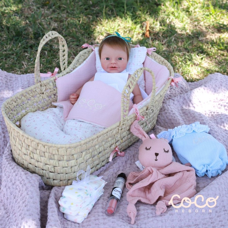 Además, con el Kit de Bienvenida nuestras bebés vienen con vestidas con ropa exclusiva de la Boutique CocoReborn junto a accesorios de alta calidad, que pueden incluir un arrullo, un neceser, un pañal, un chupete, polvos matificantes, brocha, labial, cepillo para el pelo. También encontrarás su certificado de autenticidad, manual de mantenimiento, certificado de adopción, postal, chapa y pegatina de CocoReborn